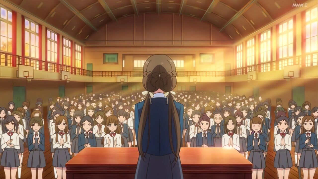 マルガレーテの言葉に、ついに決意を固めたきな子。生徒会引継ぎを切り出してくれた恋に、正式に生徒会長になることを宣言。そして全校生徒の前での就任演説の舞台では、事前に用意していた台本を全く読まず、自分の言葉でまっすぐ前を向いた。その姿はまぎれもなく、学校のトップに立つ自信にあふれた生徒会長の姿であった。