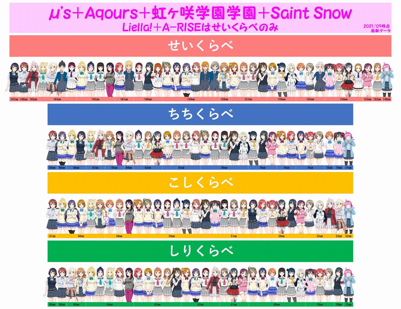虹ヶ咲をきっかけに身長3サイズが上にも下にもインフレし始めた気がする
