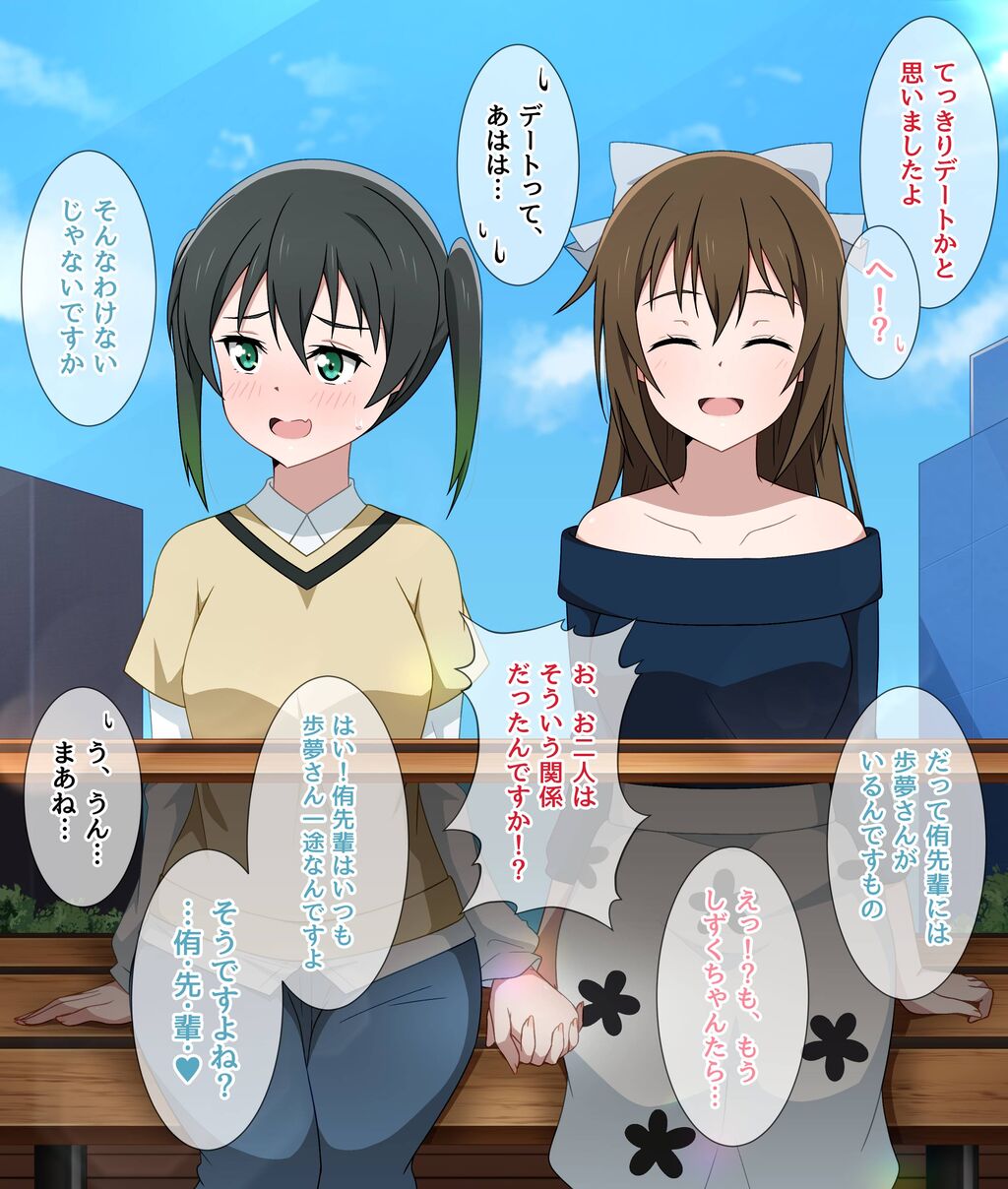 @侑ちゃんの気を引こうと必死なんだね。しずくちゃんも可愛いところあるなあ。侑ちゃんはもうちょっとだけしずくちゃんの相手をしてあげて。