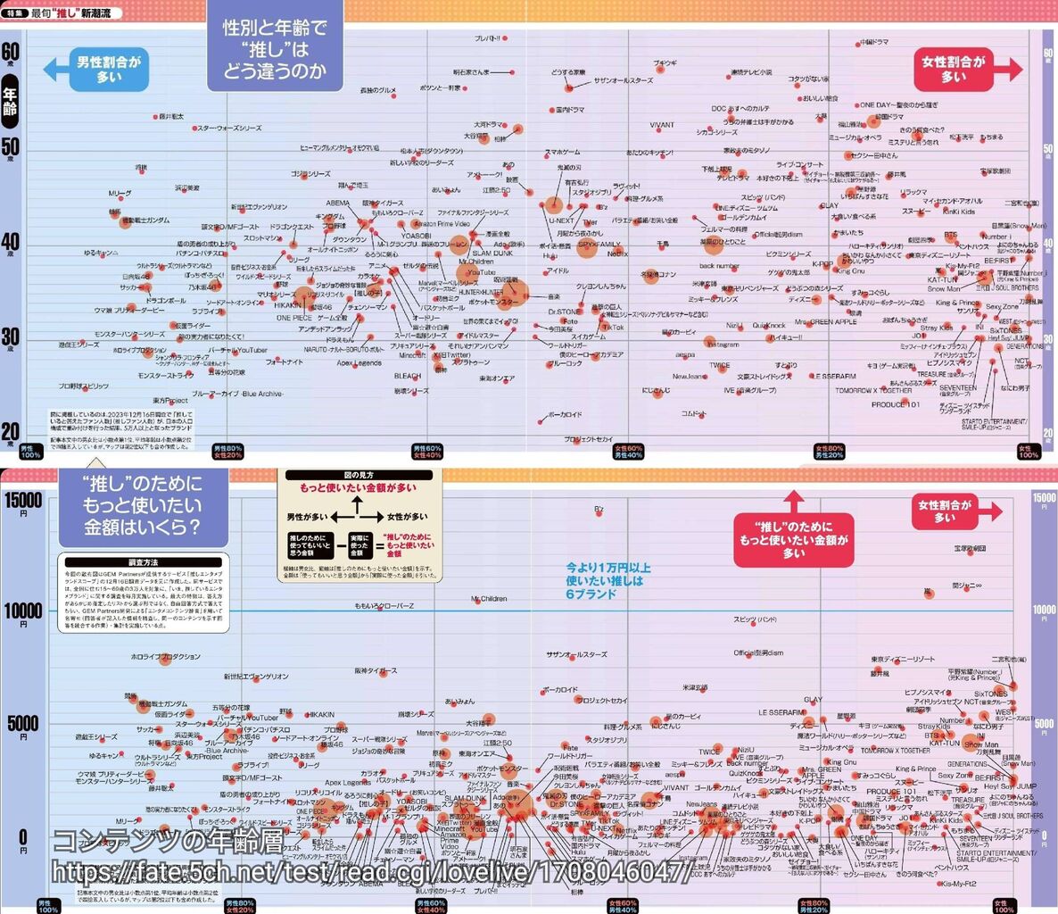 ラブライブは男性割合が多くて35前後が一番多い