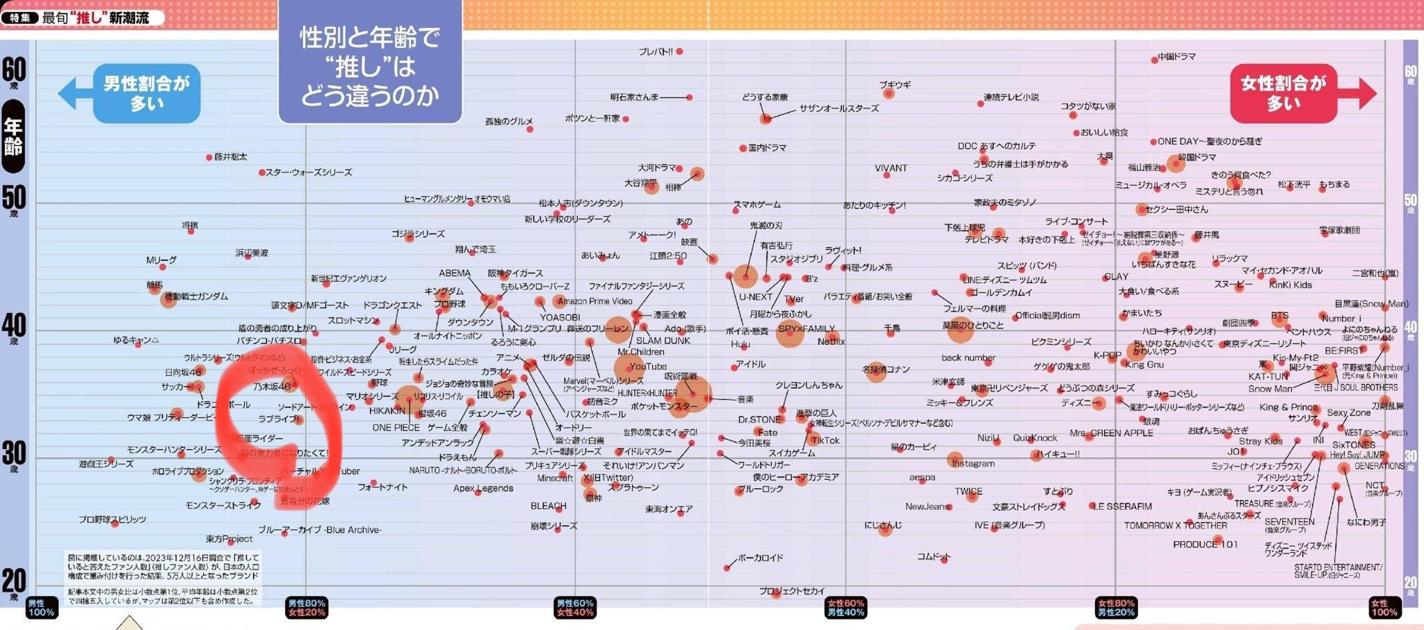 薄い円は推している人の多さを表している。