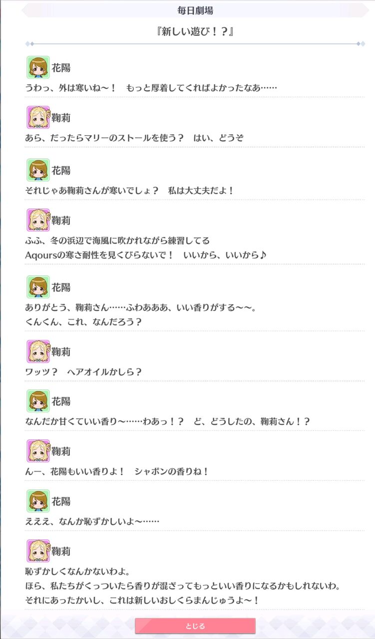 鞠莉さんは作中でシャワーも浴びまくってたし白人の血にも負けず良い香りだな!!