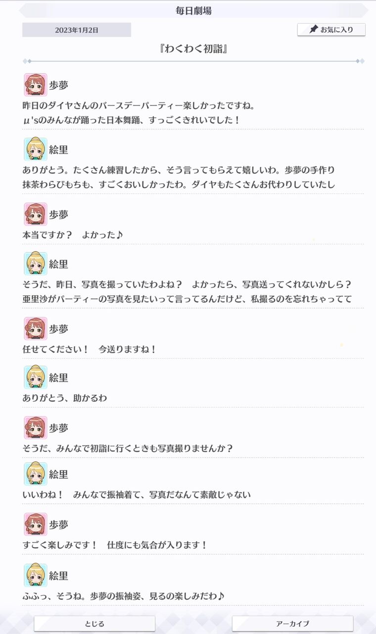 【歩夢と絵里、ダイヤのパーティから初詣へ【毎日劇場】】の続きを読む