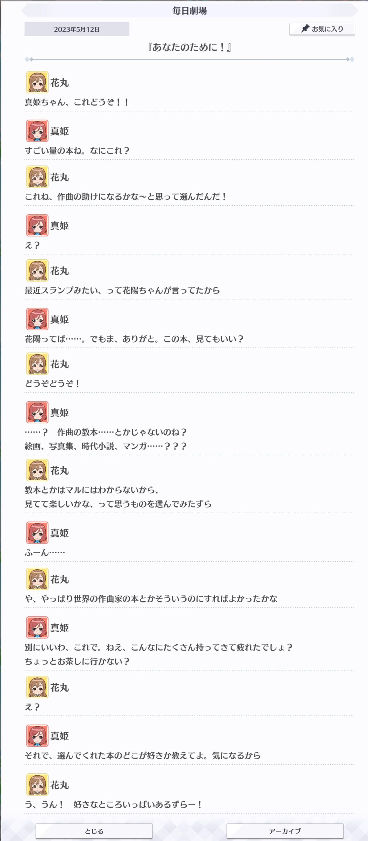 花丸、『作曲の助けに』と真姫に本をプレゼント【毎日劇場】