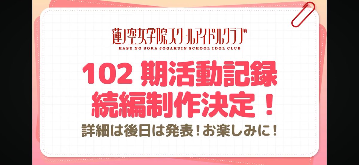 【102期活動記録続編制作決定【ラブライブ!蓮ノ空】】の続きを読む